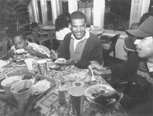 Ring Around the Rosa's: Jordan Reed (left), Mothusi Pahl and Agustin Rodriguez feast on the Mexican roast chicken that has made Rosa's Rosticceria, located overlooking the Yacht Harbor, justly famous.