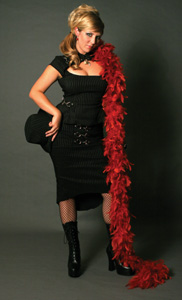 Her red boa ($8) and beaded black purse ($10) are courtesy of Ralph at Love Me Two Times, 1331 Mission St., Santa Cruz; 831.429.6210.