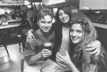 Three's Company: Eric Franklin, Olga Aguilar and Kimberly Lincoln opt for snuggling instead of pool-playing at cozy JJ's Saloon in Soquel.