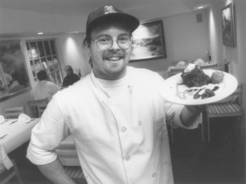 Desserts to Dye For: Cafe Indigo sous chef Bryan Molitor proudly displays one of the young yet intriging restaurant's decadent chocolate desserts.The warm eatery is an Eastside godsend.