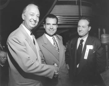 He's Back! Just kidding. Tricky Richard Nixon (center) was here at the California Real Estate Convention on Oct. 3, 1950. This photo was taken at the Cocoanut Grove. Nixon was probably speaking against some ordinance that would regulate businesses on Pacific Avenue.