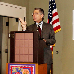 Angelides was joined at the Santa Cruz Community Credit Union by CEO Ginger McNally, Assemblyman John Laird (D-Santa Cruz); newly elected Santa Cruz Mayor Scott "Lucky" Kennedy, who recently told Nüz that the Eastern-access issue (see Nüz, Dec. 3) is, to his mind, "deader than a doornail"; former Mayor Emily Reilly; and Councilmembers Tim Fitzmaurice, Cynthia Mathews and Mark Primack.