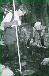 Stunning Development: Brad Valentine (left) and Rich Eliot busily stun, then count, the fish swimming in the creek that runs through the Soquel Demonstration State Forest.