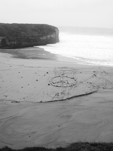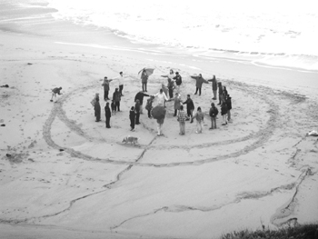 Getting naked leaves you vulnerable. Think nudists and thistles. Strippers and stalkers. Streakers running past, dangly parts swishing. Even professional nudists or strippers lay themselves open to criticism and ridicule, not to mention self-doubt, every time they toss their panties and Y-fronts to the wind. All of which gives you an inkling of how much courage and determination it took for 26 adults to take it all off for peace at Bonny Doon Beach in the middle of the worst winter storm this year. Yup, with the ocean raging mere yards away, and rain pissing down at times, 26 brave souls--not to mention two very loyal dogs--came together at the edge of the continent, where ocean meets sand, to form an international peace sign with their naked bodies.