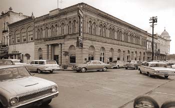 Pacific and Cooper Streets 35 Years Ago: This was Jan. 4, 1965. You can barely make out the Leonard Building where Metro Santa Cruz is now at that far corner under the overhang. The major building in front was the County Bank, another locally owned bank of yesteryear, which was bought out and bought out, etc. Next to the bank on Pacific was the catalog store for Montgomery Ward, which moved several times around our downtown. The first building to the right of the bank was probably Logos bookstore's first location, just about this time, or shortly thereafter.