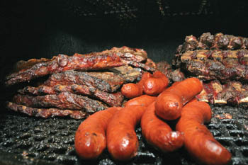 Trail Dust is best known for its pork ribs, and rightly so. They're meaty and tender and have a half-inch smoke ring, evidence of the slabs' time in the restaurant's big, barrel-style smoker out back. The ribs are described as St. Louisstyle, a term that characterizes the particular cut of meat. The ribs themselves are simply rubbed with an herb-and-salt mixture and smoked over oak for about four to five hours. When they sell out, and they often do, that's it. They're not making any more.