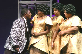 While musical director Marc Falcone has put together a fine group of South Bay orchestra-pit regulars, synthesized strings besmirch an otherwise uniformly funky, moving and great-sounding score. Falcone had little choice in the matter, as Tams-Witmark Music Library, the agency that licenses the script and score for Dreamgirls, only provides an orchestration with synthesized strings. Still, it's a shame that such a great production couldn't manage to find a way to rework the orchestration to incorporate a small string section.