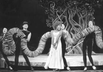 The play's allegory to parenting strains credibility, but on a more basic level, Children of Eden works quite well as a sort of Bible coloring book come to life. Dottie Lester White's ambitious choreography creates a beautiful, deliberate chaos with the sizable chorus. Particularly fun is "The Return of the Animals," a swirling parade that recreates the menagerie of animals descending upon Noah's ark.