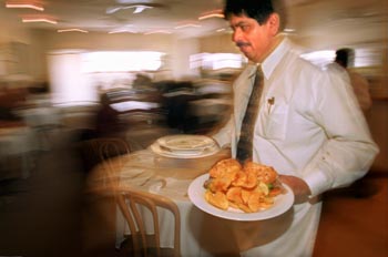 Speed of Bite: Waiter Vincente Valdez stands and delivers at Cafe Marcella.