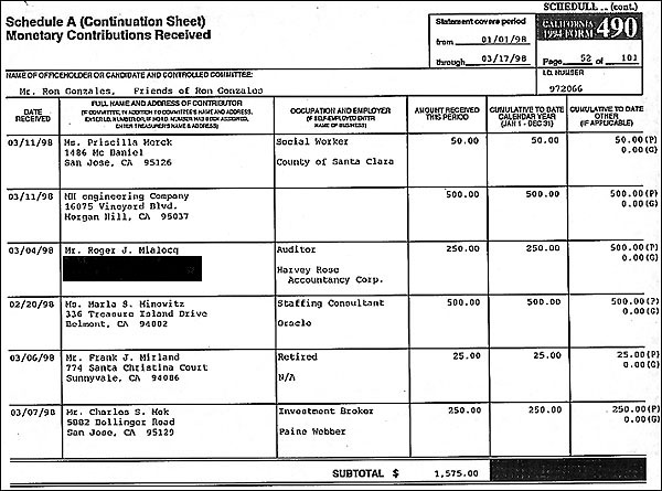 The auditor gave $1,000 to Gonzales' mayoral campaign. That wasn't unusual--at least in the sense that Mialocq and his partner, Harvey Rose, regularly contribute money to politicians, especially those who authorize their contracts.