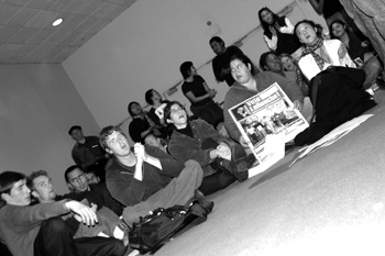 Elizabeth Sopkovich said LaRouchians disrupted the meeting because the Young Dems were ignoring the fact that America was two days away from war with Iraq. "They're lunatics," Sopkovich says. "Cheney and Bush were getting ready to declare war, but they didn't want to talk about that. They wanted to do an awards show. Where are the real ideas? People don't know how to think any more."