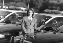 She raises the trunk to get the cash--the signal for five backup police cars to move in. But the dealer's got backup too. Seven cars slip into the parking lot and encircle her car.