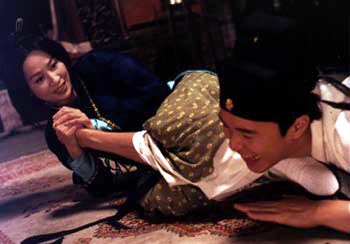From the hilarious fake Maurice Binder titles to the last shot, taken from the end of Thunderball, it's obvious that director Vincent Kok loves 007. The peculiar thing is that this isn't a spy parody, but a satire of costume kung-fu movies. Ling Ling Fat, security guard for a lame-brained emperor, is more interested in his Ronco-style gadgets than in his career; fortunately, his wife loves him. Forbidden City Cop is episodic but one of a kind: there are masked demons, an attempted alien autopsy and the King of No-Face. The martial-arts styles revealed include magnet fu, helicopter fu and the not very intimidating (but ultimately a little scary) flying-fairy kung fu. (RvB)