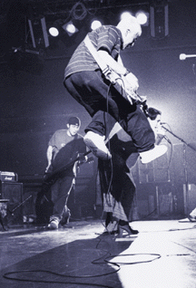 Caballero counters that when he's on skating tours, he also publicizes the band by bringing along tapes and stickers and wearing Soda's T-shirt. "By me going away, it helps the band a lot," Caballero says. "If I didn't have the career that I have, we'd be just a San Jose local band. By me traveling, the band expands."