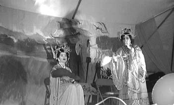 Among a crowd at a Vietnamese opera on one of the side stages, two teenage girls in hip-hugger jeans and bare-midriff blouses watched quietly while two older women sang and performed in long, elaborately tailored gowns and brightly colored headdresses. It was difficult to tell why the two girls were there. Curiosity, perhaps. Or out of respect. Or perhaps it was an obligatory stop, like getting a cup of gumbo at a Cajun festival. Eventually, after whispering to each other, the two girls walked away toward the CD store booths blaring Asian rock music, carefully avoiding the equally loud karaoke tent. B-boys in backwards baseball caps and baggy pants tapped their feet to the rolling drums of the traditional Dragon Dance. Along the row of restaurant booths, caterers of Vietnamese dishes competed against the regular fairgrounds vendors of hot dogs and cotton candy. At one booth displaying noodles and egg rolls and kabobs, a hand-lettered sign proclaimed "Buy From Us! We're Vietnamese!!"