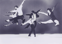 Nine Sinatra Songs is a nostalgic look back at a time when people believed in romance, no holds barred, no apologies. A mirrored ball flashes above the dancers, who are dressed in evening attire designed by Oscar de la Renta. Divided into nine sections--two ensemble numbers and one apiece for seven couples--the work features Sinatra recordings from the '50s, sung with inimitable passion if not always on key: "One More for the Road," "Forget Domani," "All the Way," "My Way" (twice).