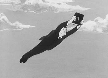 An animated short by J.J. Sedelmaier of White Plains, N.Y., whose animation has been seen on Saturday Night Live. Roy Fletcher, member of an ex-gay Christian ministry, becomes inflated with the power of the Lord and turns into the superhero Hete-Roy. Some of the cruder homo jokes seem placed to make sure the audience has it both ways, but Sedelmaier (also represented at the festival with his short "Conspiracy Theory Rock") really has nailed down that cheese-paring Filmation style of the cruddy DC superhero animation of the late '70s (and he tops the inside joke by getting a Ted Knight sound-alike to narrate). (RvB)