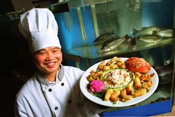 By Land or By Sea: Executive chef Tony Su can prepare a mean crab dish, just one of the marine delights at ABC, a Chinese restaurant equipped with massive live-food aquariums.