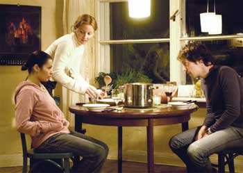 KussKuss (Switzerland, Germany; 95 min.) Director Sören Senn comes on like the Swiss Mike Nichols in this bitter look at relationships. The characters seem to communicate more through poignant silences and sarcastic looks than through words, but part of that is by designthe three pieces of this unusual love triangle don't always speak each other's language very well. One of them, Saida, is an illegal Albanian immigrant, almost picked up by the police before Katja invites her to come live with her and her partner, Hendrick. If you have seen anything at all like this beforeeven, say, Three's Companyyou know this situation is a disaster waiting to happen. (Mr. Roper never does show up.) But the most interesting thing about the film is the way its portrait of Saida shifts over the course of the film, from dehumanized object (or perhaps even worse, walking "issue") to touchstone of a certain kind of awesome power. Whether it's a healing or destructive one is up in the air until the last few minutes. (SP) (Mar 9, 9:30pm, C12; Mar 10, 2:30pm, C12)