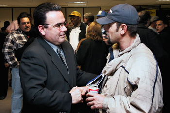 For most Santa Clara County Democrats, election night begins with a visit to the Labor Temple, where candidates pay their respects to union bosses. People certainly don't come for the hors d'oeuvres, which this year included such workingman's finger-foods as rolled slices of salami filled with spicy nacho cheese. Genuflection is required, of course, because of the cash and foot soldiers labor provides. And Tuesday's election showed its clout: Union-blessed candidates--particularly the ones labor identified as top priorities--went home Tuesday night either victorious or one step away from it. Congressional candidate Mike Honda, for instance, easily plucked off millionaire Bill Peacock, who spent more than $1 million of his own money, only to lose by 25 points. City Council wannabe Ken Yeager and supervisorial aspirant Dolly Sandoval cruised into their respective November runoffs. But labor's most impressive feat of the season had to be rescuing its chosen Manny of the Year, Manny Diaz. By the final week of the campaign--battered by his better-financed opponent Tony West as a deadbeat dad and card-club crony--Diaz effectively moved his campaign headquarters from a Willow Glen storefront to the Labor Temple. On election day, Temple phone-bankers--enticed by free movie passes--nagged Diaz-supporters (read: Demos with Spanish surnames) to get their tails down to the polls to vote. Before the results came in, one labor apparatchik couldn't help but grumble about Diaz's campaign consultant, Larry Tramutola, and the campaign's lame mailers. (The most curious piece groused that West had spent his time and money telling voters about Diaz's record of inaction "somewhat untruthfully.") Labor leaders were far from confident. South Bay Labor Council boss Amy Dean, the evening's emcee, prefaced her comments on the 23rd Assembly District contest with the phrase, "Whatever happens in this race. ..." Diaz and his entourage finished the evening over at the GI Forum, where Diaz did a jig to mariachi music and chomped on chips and salsa. By midnight, Diaz pulled ahead by 1,500 votes and was cruising to a three-point victory. An elated Jonathan Noble, Diaz's campaign field marshal, gushed, "Manny does what a lot of other candidates are unwilling to do. ... He doesn't shirk his responsibilities."