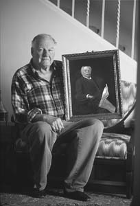 Paul Lion holds a portrait of his great-great-grandfather, Lazard.