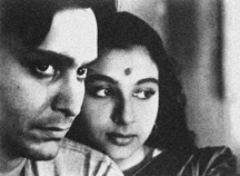 In Apu Sansar, a wife (the heartbreaking Sharmila Tagore) dutifully fans her husband as he eats. From Ray's sly handling and Tagore's minxish, barely straight face, it is easy to deduce that such a scene is a fixture of Indian movies--an instruction in wifely duty from your concerned friends in the cinema industry. Ray, however, dissolves the shot into a world-turned-upside-down image of the loving husband fanning his bride as she eats.