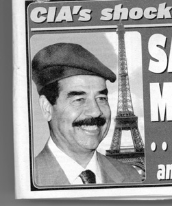 Another item hints that Saddam is ready to immigrate to France. (Hussein, with his huge Peter Sellers grimace, is pictured wearing a beret.) Unfortunately, the condition of Saddam moving to France is that he be allowed to live in Versailles and become the French ambassador to the United States.