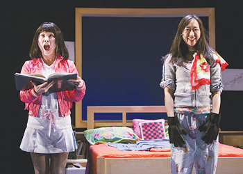 The background in Mercier's design has a cutaway space between earth (familiar brown hills) and sky, adding depth to the lighting shifts and rendering sudden, uplifting lightscapes. Rather than call attention to its clever self, the scene-change machinery, where the door (Jennifer's final frontier) shoots up out of the floor, adds to a certain Alice in Wonderland aura. The stage business also accents lightheartedness, especially the flight sequences. When Jenny is flying from Jennifer's California gated community to her birth-mom's home in China, a doll on a stick is seen coursing through the sky or past the window. At one point a large Jenny doll even soars out across the audience. These bright touches by director Kim Rubinstein maintain a light, airy sense of surprise in Jones' potentially viscous script.