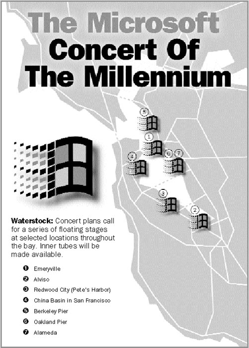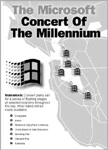 The result will be a spectacle unmatched in musical history. With the entire San Francisco Bay as its backdrop, Microsoft Corporation will present five days of continuous music by the greatest concentration of musical talent ever assembled.