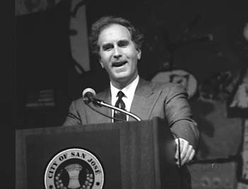 The surrounding landscape was littered with landmarks of the McEnery era: Just down the road to the west loomed the San Jose Arena, a facility that owes its existence to McEnery's decision to flex his political muscle in the late 1980s. To the southeast stood the Fairmont Hotel, the anchor of McEnery's efforts to rebuild the downtown in the '80s. And, of course, there was the convention center, the place where everyone had been earlier in the evening and where McEnery himself had delivered his final address after eight years of mayoral power.