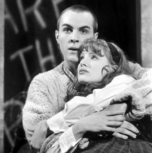 But more than anything, it's the appealing, intense performances of Travis Engle and Jessica Chastain as Romeo and Juliet that lend such a sense of universality to this production. Engle and Chastain, themselves 17 and 21, portray the famous couple as what they really were--love-struck teenagers. At the same time, however, they don't allow Romeo and Juliet's love to be merely written off as youthful whim. Sprightly with adolescent giggles and sighs, their balcony scene is a refreshingly charming romp. The production has an air of youthful exuberance, helped along with some earthy humor by Peter J. Macon as Romeo's devilish friend, Mercutio, and Linda Hoy as Juliet's nurse.