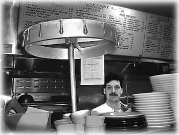 Meals on Wheel: A cook checks the orders at Intermission Cafe.
