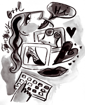 Roxanne wriggled out of her red negligee, pausing only to lean over her keyboard and peck out, "God, I am sooooo horny ..." Because my modem runs at a sluggish 14-4 baud rate Roxanne's burlesque resembled something like a slowly thumbed flip-book. In a way, Roxanne's grainy, pixilated image seemed almost old-fashioned, like the bawdy movieolas in the penny arcades of yesteryear. Yet this was a truly modern service. Fantasy Girls had delivered a live, nude girl straight to my house in minutes. It was as convenient as ordering a cheese pizza--and much faster.
