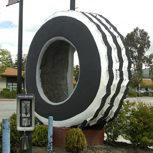 In 1959, the Alum Rock Meteor was unearthed in a warehouse in Oakland, stored by the city of San Jose for 42 years. The stone was purchased by Alponse Calderon in 1961, who fashioned the faux meteor into a vernacular tire that stands to this day at Calderon New & Used Tires at 1898 Alum Rock Ave. (see photo). Broad and lively Alum Rock Avenue is the yellow-brick road that leads, ruler-straight, to San Jose's Oz: the San Jose Country Club.