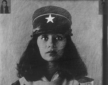 Transparencies lettered with snippets of poetic text are layered over the photo of a lovely young woman in Pierrot clown clothes in Erase Una Vez/Once Upon a Time. Deciphering statements like "It is true that it is singing" is not nearly as compelling as trying to decide if the woman is dispassionate, contemptuous or sad--it changes, depending upon which eye you focus on.