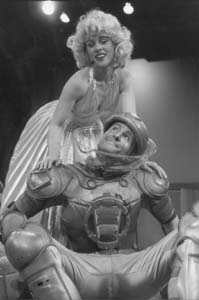 IT MUST BE a millennium thing. Galaxy Quest is a hit in VHS/DVD format. Over at City Lights Theater Company, they're running Resident Alien. Now San Jose Stage Company opens Return to the Forbidden Planet by Bob Carlton. If we are, indeed, entering a new Atomic Age, count me in. After all, what's more fun than ray guns, woo-woo-woo sound effects, and an infantile misunderstanding of astrophysics? Fans of the 1956 film Forbidden Planet are advised to abandon any hope of recapturing the innocence of that sci-fi classic here (although the play's posters do use misleading artwork from the movie). This is what you might call a crazy quilt--with an emphasis on the word crazy--of the complete works of William Shakespeare, MST-3K and a slew of early-'60s AM radio hits.