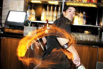 Graham "Britnips" Kimura is a bartender with flair. Literally. For the last five yearshalf of his barkeep careerhe's been practicing what is referred to as "Flair" bartending, which means not only serving drinks, but serving them with style. While mixing and preparing drinks for their customers, Flair bartenders use all types of tricks, tosses and throws to turn drink preparation into performance art.