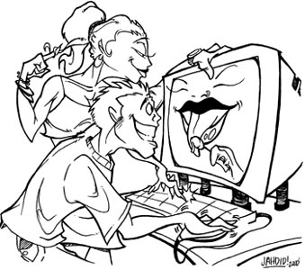 The class focuses largely on "primary sources," many of which will be old news to anyone with even a mild curiosity about cybersex. There's "Virtual Valerie II," a vintage 1990 CD-ROM game in which the goal is to make Valerie have an orgasm. (Valerie is a horrifically disproportioned big-breasted blond graphic, with long red fingernails, who masturbates incessantly.) Making Valerie come involves moving a mouse rapidly from one erect nipple to the other and then back to her vagina in a repetitive-stress-inducing triangle. She moans thoroughly irritating, canned indications of her pleasure throughout: "Fuck me. I never knew it could be like this. Fuck me. I'm gonna. I'm gonna. I'm gonna come." There's a button that you can push to make yourself come instantly--in the game, that is--but then you immediately lose all your points. "It's not about you. It's about Valerie," Madden cracks.