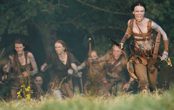 Woad Is Me: Keira Knightley, the fetching lead of the Woads, leads her forces into battle in 'King Arthur.'