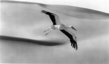 Sight for Soar Eyes: A white stork glides over the dunes in 'Winged Migration.'