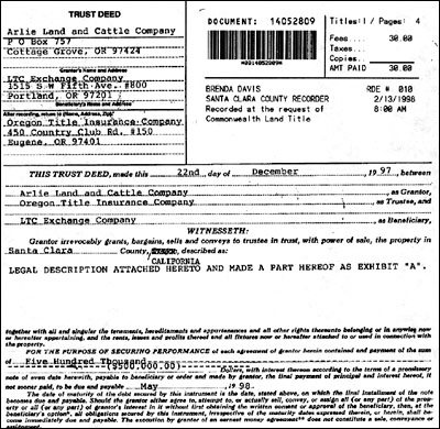 What is known is that Redwood Hills LLC was incorporated in Oregon within a week of becoming part of a trust grant with Arlie. On one occasion they put up $75,000; in another instance they may have put up $500,000 with land near the reservoir as collateral. Los Gatos Hills LLC was incorporated on the same date by the same person, Michael Kearney, an Oregon attorney. The Los Gatos company entertained a brief option to buy the property, but did not make a purchase. "I just drafted the documents," says Kearney, who was unwilling to talk about the nature of the companies, their partners or their relationship to Arlie.