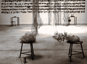 Granted, we do see some gestural parallels: a daughter unselfconsciously plays footsie with her mom while listening to a story; one of the artist's adult relatives absentmindedly strokes her partner's hand while they lie reading. Plants are tended, quilts are smoothed, salads are munched. Viewers are left to puzzle out who's a sibling, who's not. The video is just not intriguing enough to hook us into the sober-sided tautology that family members often exhibit similar behavior patterns.
