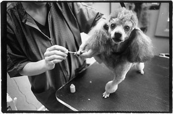 BRIDGET THE TOY POODLE looks beseechingly at me, a paw held high in the air by Reeni the pet groomer. Reeni continues talking while absently fanning the air around Bridget's paw, trying to speed the drying of the cotton-candy-pink nail polish adorning the five little claws. Those glossy nails will perfectly match the beaded pink bow that now rests in the teased and hair-sprayed bob on Bridget's head.