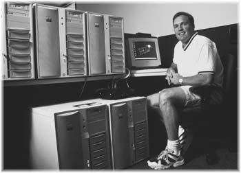 "Ideally you have these four kick-ass servers, which stack up two and two. It's a dual Intel system, totally redundant, so it never goes down. The top end costs half a million dollars. But that's nothing compared to what you'll make.
