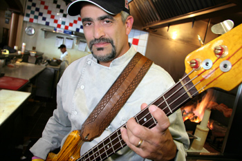 He's constantly on the road, and the music is always with him. "Most of the years up until now, the last 11 or so, I'm gone 20 weeks a year, basically," he said, "one week at a time at some venues. The kitchens I've worked in, and then designed in the trailers, have just killer sound systems. Just for me. The rest of the guys have their own stuffwireless microphones to do their victory speeches and stuff. But in the kitchen, it's a separate deal."
