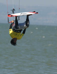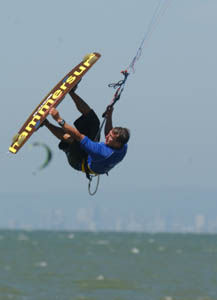It's probably no coincidence that a preponderance of kiteboarders seem to hail from the technology world. The equipment and the novelty appeal to the gadget-prone, and plain old avoidance of boredom spurs a surprising amount of innovation around here. Eric Steinbroner, CFO of San Jose's Centerpoint Broadband Technologies, an optical networking company, was one of the pioneers of kiting. Gabe Brown, a web developer, was one of the founders of the San Francisco Kiteboarding Association. Then there's Steve Gibsonhe works as a director of strategic development at Verisign, and runs a kiteboarding website, kiter.com.