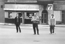 In 21 years, the hard language of American Buffalo has been freely borrowed by movies and theater. The shock effect is gone, and now the play seems almost like a poem, built on the drumming rhythm of people talking to hear themselves talk. Mamet draws on Hemingway's and/or Gertrude Stein's idea of the impact of words repeated and stressed, as in Teacher's hectoring, "If you see the least chance, you don't take that chance."