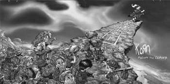 With a sound that is more abrasive than typical metal, KoRn exposes the dark side of humanity and offers fearless social commentary. Its debut album features harsh songs about speed addiction ("Helmet in the Bush"), child molestation ("Daddy") and misunderstood youth ("Faget"). Follow the Leader, although not quite so weighty, also delves into serious issues and experiences drawn largely from singer Jonathan Davis' own deep well of pain. His brutal honesty and exquisite fury are both provocative and cathartic. Davis is so wrapped up in his anguish that he doesn't sing; rather he barks, wails, moans, screams, sobs, growls and often speaks in tongues.Although Life Is Peachy was sometimes disappointing, with juvenile lyrics and two cover songs (Ice Cube's "Wicked" and part of War's "Low Rider"), KoRn is as hard as ever on Follow the Leader, with furious lyrics and throbbing, gut-wrenching music. "My Gift to You" is written about Davis' first girlfriend, who destroyed his ideas about the purity of love by sleeping with more than 30 guys behind his back. Still carrying angry scars from the experience, Davis displays his flaring temper: "Your throat I take grasp/and your eyes roll back/love racing through my veins."