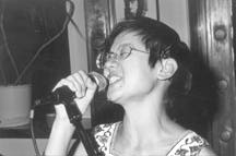 Next, Joan of Catdogma goes solo. Guitar in hand, this language instructor and Mountain View resident edges around the tangle of amp wires. Doing little more than swaying before the mic, she whispers, howls and teases out her original lyrics, leaping from smoky seduction to anger to moody reflection. Captivated, the crowd tries to reconcile the sexy agile voice with the pretty-girl-next-door image.