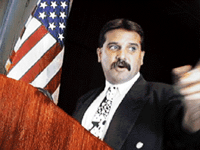 Cuban Foreign Minister Roberto Robaina makes a point during his Sept. 27, 1995 speech to the US-Cuba Trade and Economic Council in New York City.